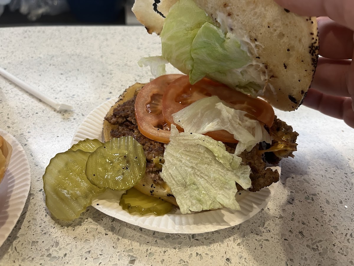 Very good, and unique burgers. Fresh poppy seed roll enclosure, and lean, flavorful patty. Fresh lettuce and tomato topped mine off. Access to parking looks tricky if you drive by going West on Central avenue. Take the narrow driveway immediately to the left of the small diner. If coming up from the south on Raritan Road, pull into the lot behind the diner. It is worth the trip, and it is an old-fashioned experience that still is worth it.